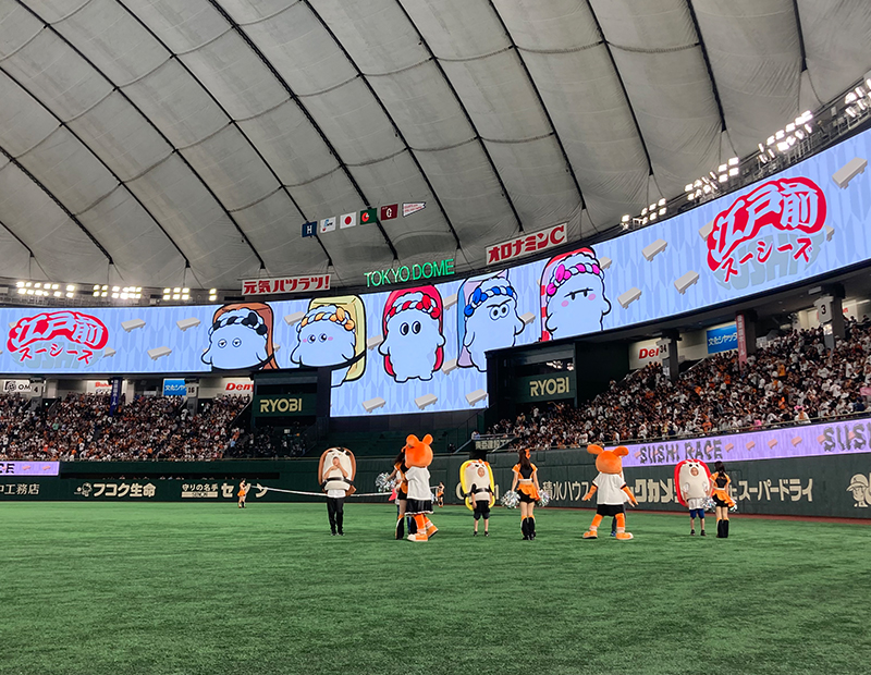 ファン参加型のイニング間イベントで、出場者は粋でいなせな江戸っ子グループ「江戸前スーシーズ」に扮して競走します。