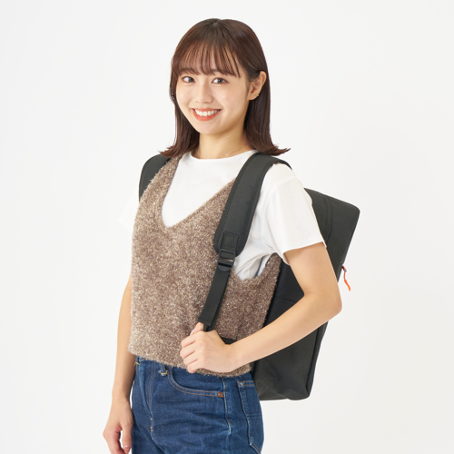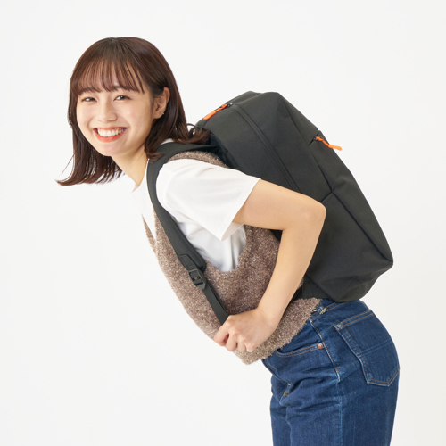 前面にはファスナー付きの大きな立体ポケット、側面にはボトルホルダーがあり、収納力抜群のアイテムです。