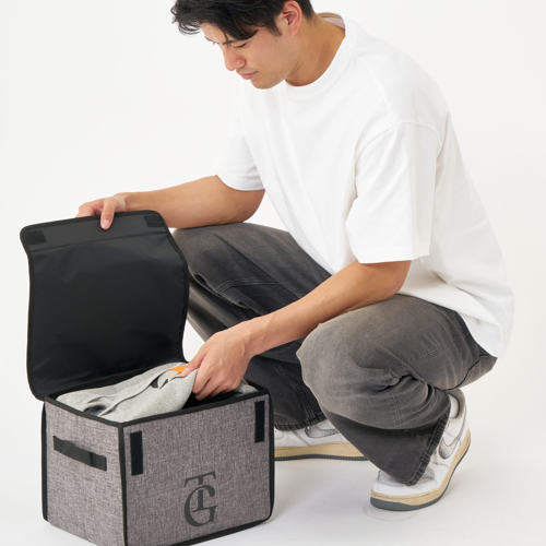 ムラ感のあるカジュアルな素材を使用。 ご自宅のインテリアにも馴染み、折りたたんで片付けることができます。