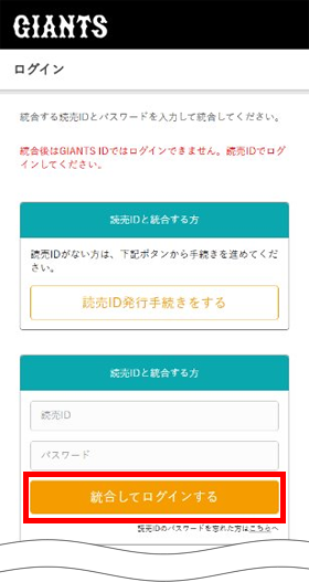 GIANTS ID、読売IDともにお持ちの方(GIANTS IDでログイン)