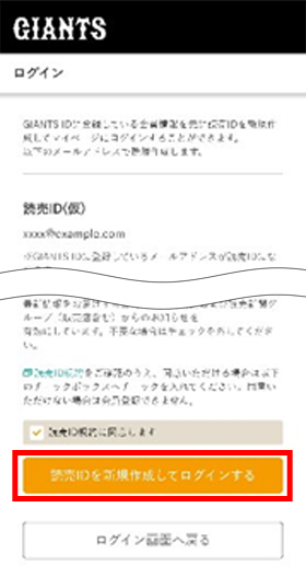 GIANTS ID、読売IDともにお持ちの方(読売IDでログイン)