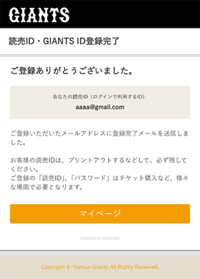 読売IDは様々な巨人軍サービスをご利用の際に必要となります