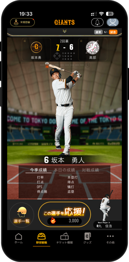 リアルタイム一球速報でアプリならではの観戦体験!選手にエールを送ろう!