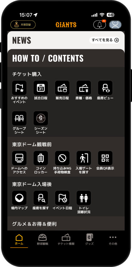 ジャイアンツの最新ニュースや各種インフォメーションが気軽にチェックできます。