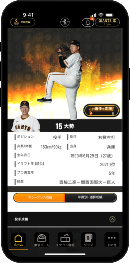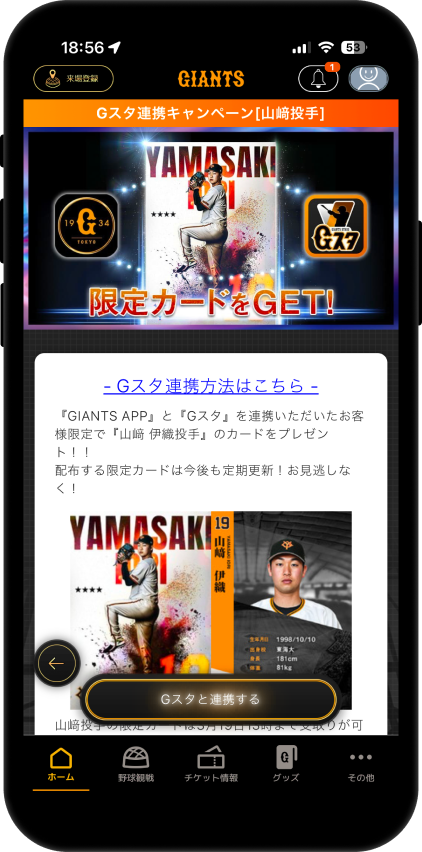 GIANTS APPとGスタを連携することで、特別なカードをゲットしよう。